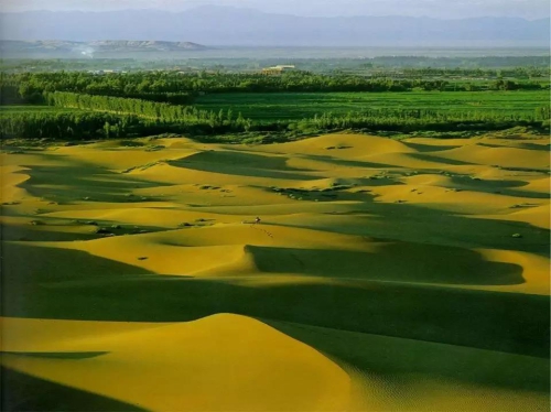 現(xiàn)實中,能夠孕育新生命的綠洲具有生態(tài)系統(tǒng)的脆弱和易變等特性。歷史上各種原因造成的水源枯竭、河水斷流、土地沙漠化及土壤鹽漬化、植被毀滅,往往導致綠洲遷移。我國西北地區(qū)5%左右的綠洲供養(yǎng)著95%的干旱區(qū)人口,綠洲的穩(wěn)定可持續(xù)發(fā)展非常重要?!?/p>