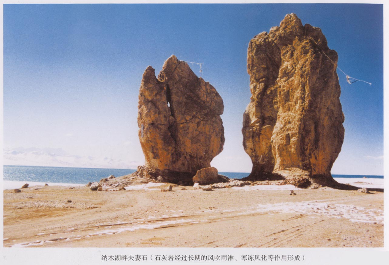 青藏高原石灰?guī)r的分布面積約20萬平方公里,大自然的神工鬼斧雕塑了奇形怪狀的巖溶形態(tài)。位于高原東緣的龍、九寨溝是石灰?guī)r溶蝕和碳酸鈣沉積形成的巖溶景色的代表,在高原腹地的唐古拉山山坡安多山上有巖溶洞、巖溶峰和其它奇形怪狀的巖溶地貌。在西藏昌都附近的大喇嘛山下有一排似長城?樣的峰林墻組合。在阿里地區(qū)的班公湖畔有許多峰林溶洞,是鳥類棲息的最佳天然場(chǎng)所,形成了藍(lán)天、白云、鳥飛、魚躍、湖靜、岸奇的人間仙 境。在青藏公路沿線的雁石坪溫泉一帶也分布著由泉華堆積形成的泉華錐和石灰?guī)r造型。