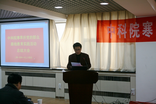 之后,寒旱所黨委書記、副所長呂世華作了寒旱所黨的群眾路線教育實踐活動總結報告。呂世華介紹了寒旱所群眾路線教育實踐活動基本情況、主要做法、取得成效。寒旱所教育實踐活動自2013年7月全面啟動以來,所黨委認真深入學習中央和中科院的精神,按照中央“照鏡子、正衣冠、洗洗澡、治治病”的黨的群眾路線教育實踐活動的總體要求,圍繞中央八項規(guī)定、院“12項要求”和反對“四風”精神,通過學習教育、聽取意見,查擺問題、開展批評,整改落實、建章立制環(huán)節(jié),結合研究所的工作實際, 扎實、有序、高質量地推進了黨的群眾路線教育實踐活動。通過教育實踐活動,進一步堅定了理想信念、明確了創(chuàng)新責任,堅定了“創(chuàng)新為民”宗旨,進一步促進了作風轉變、提升服務能力,強化了“務實求真”作風,進一步加強了科研管理和廉潔從業(yè)風險防控體系建設,強化了制度建設,初步形成踐行黨的群眾路線的長效機制